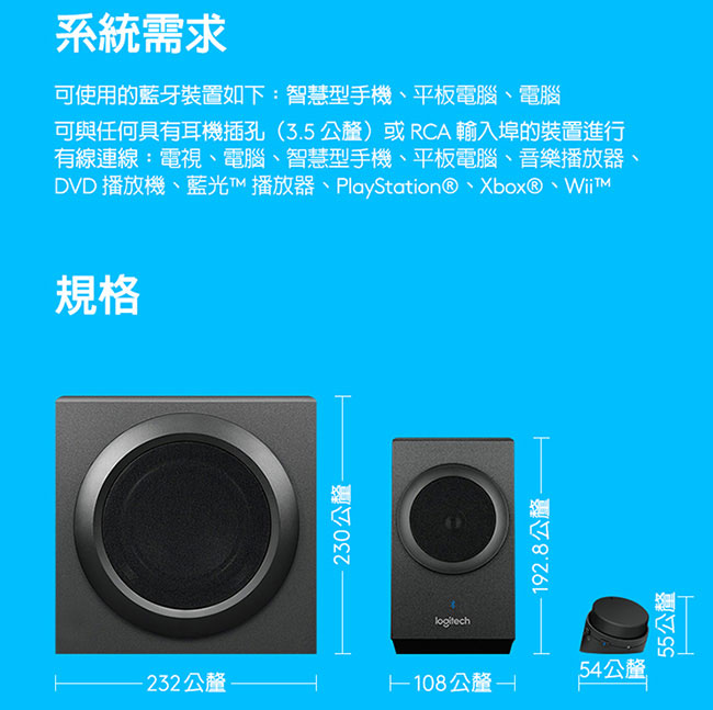 有關羅技 Z337 2.1聲道藍牙喇叭.的詳細介紹如下: 羅技 Z337 2.1聲道藍牙喇叭